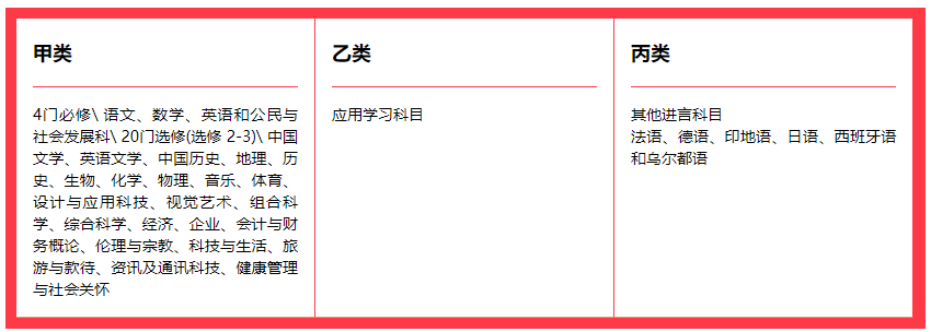 DSE课程分为甲类、乙类、丙类。选课机制通常采取“4+2”模式或者“4+3”模式,即4门必修+2/3门选修,共6/7门考试。大学申请时,取其中4-5门成绩较好科目即可。